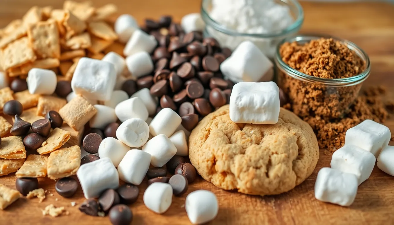 S’mores cookies require a few essential ingredients for that perfect flavor and texture.